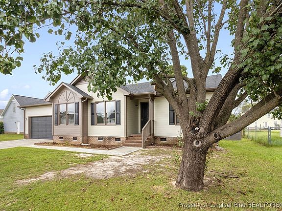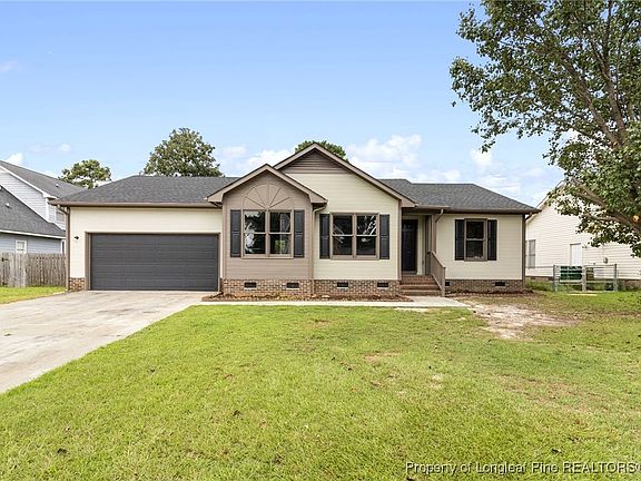 Welcome to this beautifully updated ranch-style home offering 3 bedrooms and 2 bathrooms, just minutes from Fort Bragg! With a 2025 roof and modern updates throughout, this home is move-in ready. Step inside to find tons of natural light and stylish LVP flooring flowing through the main living areas. The spacious living room features an accent wall, cozy fireplace, and ceiling fan, creating the perfect spot to relax. Enjoy meals in the formal dining room, highlighted by a modern chandelier and accent wall. The kitchen is a true showstopper with quartz countertops, stainless steel appliances, subway tile backsplash, and abundant storage. The master suite has double vanities, garden tub, separate shower, and a huge walk-in closet. All three bedrooms offer new carpet and ceiling fans for comfort and style. Step outside to your privacy-fenced backyard with a spacious deck, perfect for entertaining or relaxing. Added features include gutters and ample outdoor space for pets or play. Don’t miss the opportunity to own this charming home with modern touches, a fantastic layout, and a prime location!