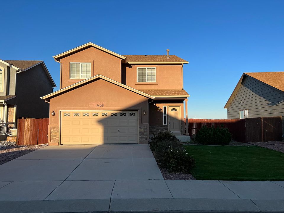 Great location in between Fort Carson and Peterson AFB. Open floor plan includes gas fireplace with hardwood floors throughout the main level. Kitchen is something to brag about as it offers 42" upper cabinets, granite counter tops, counter bar and new stainless steel appliances. Laundry is upstairs located near all bedrooms! Master bath includes soaker/shower and walk-in closet. Basement is unfinished with plenty of space for storage or a great area for home gym! Welcome home! Looking for 640+ credit Income 2x monthly rent Great rental history