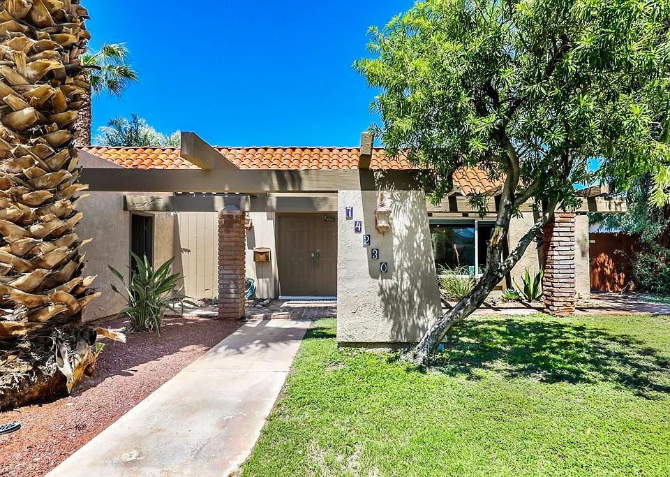 You must see this charming Palm Desert home! Incredible location with amazing outdoor living spaces and No HOA Fees. Enjoy your beautiful in-ground pool and grounds with an entertainer's dream patio. Inside you'll find freshly painted, light-filled rooms with vaulted ceilings, a new air conditioner and venting, new flooring, newer windows & doors, ceiling fans, remodeled master bathroom, and indoor laundry. Imagine waking up and walking directly out to your own backyard resort through your master bedroom French doors. The kitchen has recessed lighting with stainless steel appliances and new cabinetry. The lot is so spacious that one could easily expand the home to a 3-Bedroom. This friendly neighborhood is within minutes of parks, elementary/middle/high schools, the College of the Desert Street Fair, McCallum Theatre, Westfield shopping mall, grocery stores, and The Shops at El Paseo. Northwest views and exposure are ideal for your full-time or private vacation home. Welcome Home!