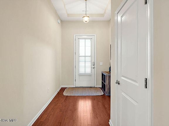 Welcome to the Eaton Model by DR Horton, with a brick and vinyl exterior. This is a 3 bedroom/2 full bathroom single story home located in the Reserve at West Bay. The interior features an open floor plan, hardwood floors in the main living areas, screened in porch, and much more. A propane fireplace flanked with shelving and cabinetry, as well as a built-in desk, grace the bright living room. The kitchen and dining areas are ready for entertaining with an island with seating, granite countertops, tiled backsplash, a reverse osmosis system, walk-in pantry closet, and all appliances included. The primary suite is enhanced with a trey ceiling, walk-in closet, double vanity, walk-in shower with built-ins, two linen closets, and a private water closet. An additional two bedrooms, and a central full bath are perfect for your family or for your guests. The laundry room includes wall cabinets, and the washer and dryer convey. A built-in drop zone, situated just off the garage, is a convenient and practical addition! Enjoy time entertaining or relaxing in the screened-in porch overlooking the fenced-in backyard. Extra storage is available with attic access using pull-down stairs located in the garage, and ceiling access found in the primary bedroom walk-in closet. For buyer's peace of mind, a one year 2-10 Home warranty is included. Located in the Ogden area close to Wrightsville beach, restaurants, medical facilities, and shopping as well as easy access to the Military Cutoff bypass and HWY 140.