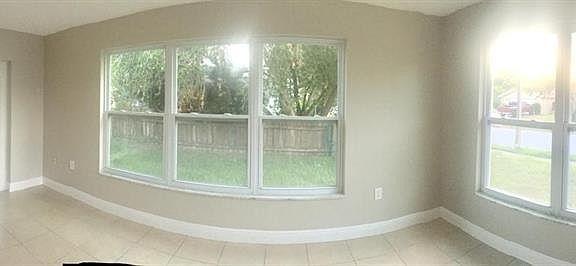 This beautiful home has an open floor plan concept with high ceilings making the area feel large and spacious. The living area has large windows with lots of natural light. Master bedroom is suitable to fit a king size bed and features a private bathroom with a large walk-in closet. Garage has been converted to make a third room which can be utilized as another bedroom, office, gym or man cave. Home has inside laundry hookups for washer and dryer and a large screened in lanai. Property is partially fenced with large parking pad and is located in a family friendly subdivision close to neighboring schools. Pets permitted. Background check is required. Available for rent NOW!