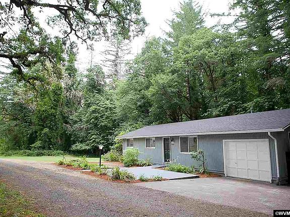 Accepted Offer with Contingencies. Renovated inside and out in 2020 with new 35 year roof, this property has a beautiful mountain view and sits on 2 forested acres with oak, maple, madrone, fir, & cherry trees. A short 6 minute drive to town, it is a quiet and private property with lots of wildlife, as well as easy biking to McDonald forest. Enjoy the artisanal well water, blueberries, grapes and cherries. Garage has a work bench and storage, and there is a large outdoor storage shed.