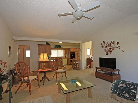 Outstanding Home in Exceptional Condition. Corner lot in 55+ Portola Country Club. This 1680 sf, 2 bed/2 bath home is on a permanent foundation (easier financing)with low HOA dues. Excellent condition, starting with a great corner lot with 2 patios and great views, striking landscape. The interior is immaculate, a tile entry leads to a large family room which opens to the kitchen, vaulted ceilings. Drywall, high quality carpeting, neutral colors, being offered partially furnished. (See Inventory Contents List). The back yard is adjacent to the golf course, bordered by a small brick wall. Portola CC offers FREE golf to residents, FREE cable TV, FREE internet and FREE trash service. There is a clubhouse, 3 community pools/spas, tennis/pickle ball courts, bocci ball, fitness center, dog play area, RV Storage (+$40), HOA is $335/mo. Portola CC is a very friendly community and this house has great neighbors--come check it out.