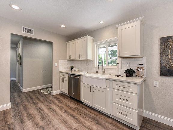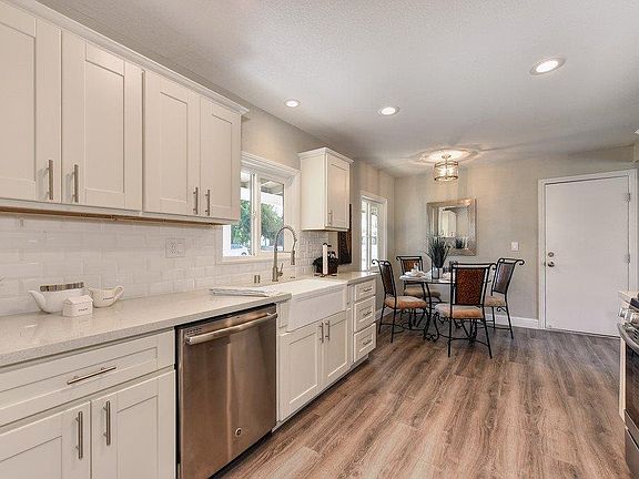 This home has been remodeled.It is located in a very quiet neighborhood among mature trees and homes on large lots. The kitchen and bathrooms are completely remodeled. The kitchen includes brand new white shaker cabinets, stainless steel appliances, Quartz counters , and a farmhouse sink. Master and hall bath both newly remodeled with new vanity,Quartz counter top,12x24 porcelain tile. New laminate and carpet throughout. New roof, gutters and electrical panel. All work is fully permitted.