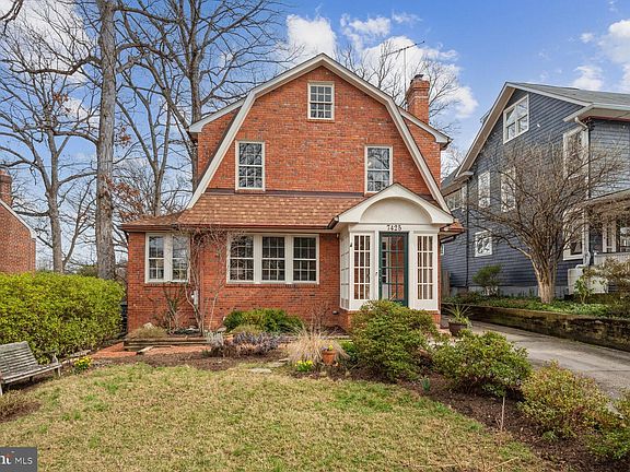 Welcome to 7425 Baltimore Ave, a beautiful, one-of-a-kind brick Dutch Colonial from the 1930s. Solidly built, with stately columns and graceful garden paths, this enchanting house is ideally situated in sought-after North Takoma, just blocks to Takoma Metro and downtown Takoma Park, and convenient to vibrant downtown Silver Spring as well. The home features generous original spaces including an oversized living room and a charming, vintage glass-enclosed front entry with ceramic floor tile. Originally known as a "Lindbergh Room", you could sun your jaundiced baby out here without fear of kidnapping! Large windows wrap around the recent main-floor kitchen and family room addition, which thoughtfully expands the living space with radiant floor heating and abundant natural light. The main level includes the spacious living room with fireplace, a light-filled flex room (study/office/playroom) off the living room, a separate dining room, a powder room and a large, airy, modern family room /kitchen with skylight, stainless appliances and plenty of cabinets, counter space and built-in storage, overlooking the leafy, private rear garden, perfect for bird watching, relaxing, entertaining and play. Upstairs are three bright, inviting bedrooms and updated full bath. The lower level family room/guest room features luxurious new carpet and a full bath with new pedestal sink and laundry area. There is ample storage throughout. A lush, mature border of hybrid azaleas frames the artfully landscaped front yard, which includes Ito peonies, yellowwood and serviceberry trees, flowering perennial beds and ornamental grasses. There is driveway parking for two vehicles and a large detached garage storage shed. This home features an energy-efficient heat pump/AC and several ceiling fans; it opens easily to gentle, cooling breezes, reducing energy bills in summer. You are 0.6 mile to METRO and just blocks to schools, parks, library, shopping, restaurants and rec center.