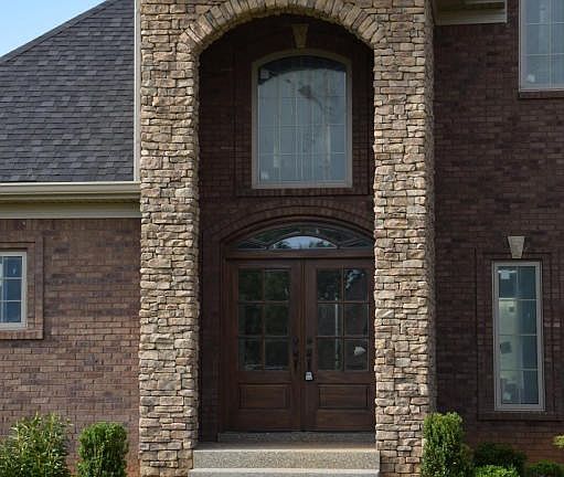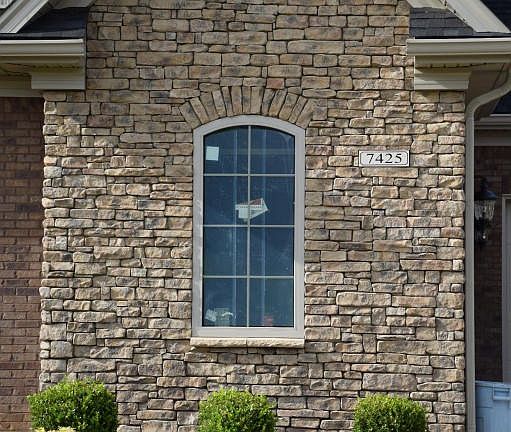Step into this 1.5 story brick and stone home adjacent to a serene common area beyond. This home includes many grand features such as the hardwood flooring throughout the first floor with carpeting in the first floor master and fully tiled laundry with storage lockers. The great room offers a built in cabinetry and a fireplace flanked by 4 windows with transoms overlooking the walkout back yard. Beyond the great room is the covered porch with trek decking and a step down patio below off the lower level. The kitchen is a gourmet cook's dream: custom off white glazed cabinets on the perimeter and a black stained center island plus a walk-in pantry; Granite counters throughout, stainless steel double ovens, gas cooktop, and drawer microwave. The first floor master suite is nestled in