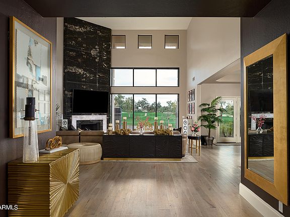 Welcome to this jaw dropping modern estate with stylish finishes and unparalleled views, in the privately gated community of Gainey Ranch. This beautifully remodeled smart home boasts 4 bedrooms, 4.5 bathroom, private office, private elevator and a custom bar that is guaranteed to impress! The floor to ceiling window makes for a dramatic entrance and showcases the breathtaking views over-looking Gainey Golf Course and surrounding mountain landscape. Modern kitchen has high end appliances and Cristalo Quartz countertops. The upstairs primary suite features private balcony, fireplace and spectacular bathroom with oversized wet room and Moen digital display. Don't forget to visit the brand new clubhouse and gym!
