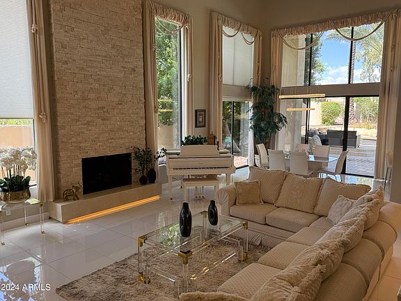 Introducing a true masterpiece! Elegantly furnished home that captivates with its perfect blend of luxury and tranquility. This updated sanctuary, nestled behind guard gates on an expansive double lot in one of Scottsdale's most exclusive neighborhoods, has been reimagined with a sophisticated modern design. The seamless indoor-outdoor flow creates a rare harmony, inviting guests to move effortlessly through the open, light-filled spaces toward the inviting pool area. With exceptional attention to detail, this distinctive home in Gainey Ranch Legends features 3 bedrooms, 3 baths, and a grand owners suite that epitomizes both elegance and comfort, complete with a lavish master bath. Ensconced within a secure, double gated community and surrounded by meticulously landscaped grounds