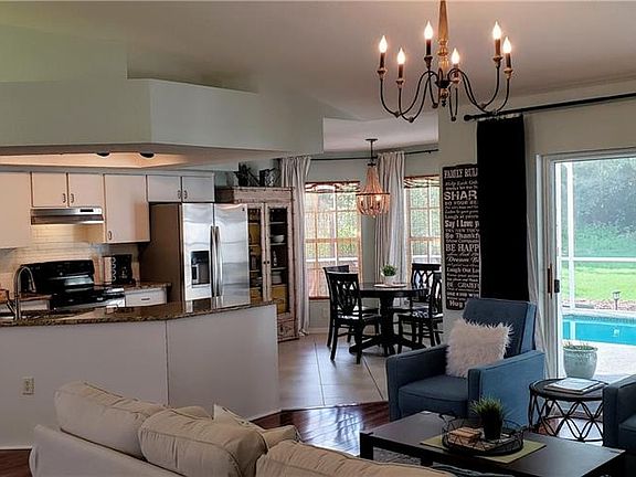 Stunning move-in-ready pool home surrounded by nature on a premium 1/4 acre conservation lot + NO HOA, NO CC&Rs, NO CDD! Enjoy this sparkling clean quality-built all block single-level home featuring an updated kitchen with granite counters, stainless steel appliances w/ bright cabinets, farmhouse lighting and updated flooring throughout (no carpet). A soaring, vaulted ceiling in the open floor plan combo great room/dining room extends the entertaining outside to the private backyard showcasing the screened-in heated pool with cascading water feature (and no rear neighbors)! Views of the woods, pond and tropical landscape paint picturesque nightly sunsets. Park your boat or RV onsite as the driveway is long, the side yard is wide & fenced plus the aquaponics sprinkler system is ideal for an eco-friendly garden. New shopping and dining nearby as this growing area embraces small-town charm. Not to mention the Tampa waterways and award-winning Gulf beaches just a short drive away. This property truly has the WOW Factor!