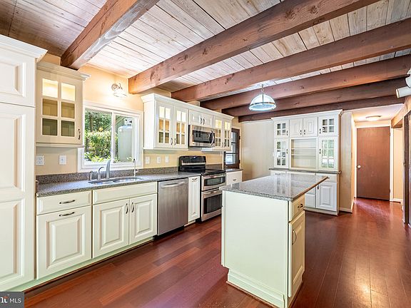 Open House Friday 5:30-6:30 pm, Saturday 1-3 pm and Sunday 1-3 pm.! Welcome Home! Escape to your own Wooded Retreat spanning over 3 serene acres. Nestled amidst tranquil woodlands, this charming contemporary haven emanates a distinct allure. Step into the luxurious kitchen featuring silestone countertops, modernized white cabinets adorned with lighting, stainless steel appliances, including a wine fridge, and a welcoming breakfast bar. Throughout the home, exposed brick and wood beams add character and warmth. Flexible living spaces include a main level office or bedroom, ideal for modern lifestyles, followed by the inviting living room boasting a brick wood-burning fireplace, perfect for cozy evenings. Experience the ultimate haven, where hardwoods reign supreme, and comfort is ensured by a wood-burning stove with a heatilator. Retreat to the primary bedroom, where tranquility awaits with its own modern electric start gas fireplace with remote, a nicely appointed walk-in closet, and a renovated bath featuring gorgeous large grey tiles, complementing the stunning tiles in the stand-up shower, soaking tub, and dual vanity. The second full bathroom also impresses with grey tile floors, a tiled glass shower, dual vanities, and skylights. All upper-level bedrooms feature fans for added comfort. The basement boasts a finished great room, laundry facilities, and a walk-out. Step outside onto the stone patio amidst natural beauty, where you can bask in the tranquility of the surrounding woodlands. In the fully fenced backyard, you'll discover an adorable garden, a versatile shed/workshop, and a playground, offering endless possibilities for outdoor enjoyment. Tucked away in this serene setting is also a chicken coop, adding to the charm and potential of the property. Fresh landscaping adorns both the front and back yards, enhancing the property's curb appeal and natural allure. Additionally, the well-sized two-car garage with kitchen access adds to the home's functionality and convenience, complemented by a freshly paved black asphalt driveway. Home updates include a french drain, stone retaining wall and a well-maintained HVAC system. Conveniently located near Baltimore, Washington D.C., and Fort Meade, yet secluded in nature, this property offers the perfect balance of accessibility and tranquility. Experience the best of both worlds in this idyllic retreat!