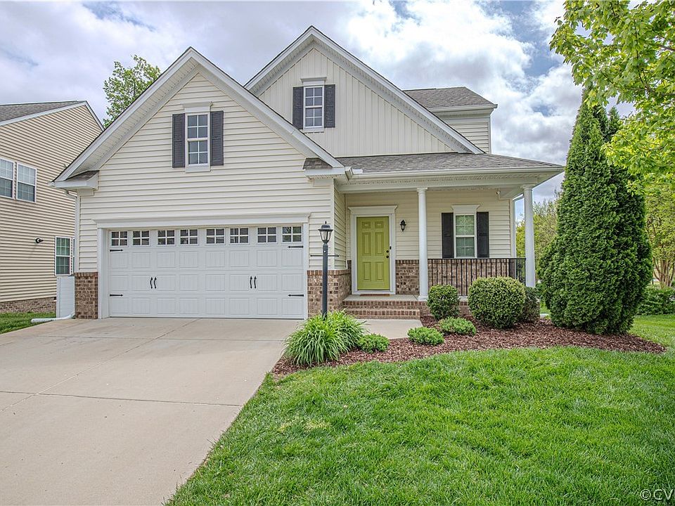 Beautiful home in the desirable neighborhood of Magnolia Green! Boasting a bright open floorplan, it features comfortable spaces accented with an easy living atmosphere! 9' ceilings on the first floor starting at the Foyer with turned stairs to the second floor, impressive Kitchen with granite counters, large island, walk-in pantry and opens to a wonderful dining area, perfect for gathering family and friends and the Great Room with gas fireplace and access to the inviting deck. The first floor primary suite has a tray ceiling, walk-in closet and 5' ceramic tile shower! Upstairs has 2 additional bedrooms with walk-in closets, bath, wonderful Flex room, and home office! 2-car garage, tankless water heater, 2-zone HVAC, irrigation system, deck with Trex flooring, concrete patio and fenced rear yard!