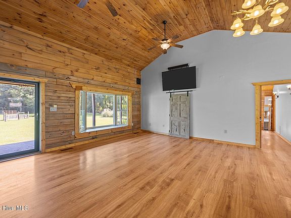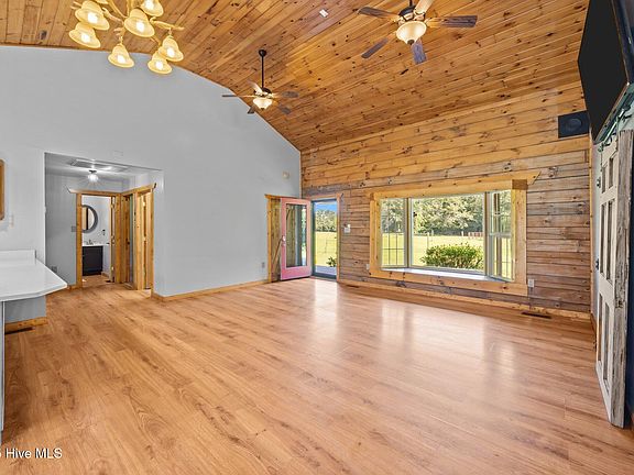 Welcome to your private retreat on 28 acres of serene countryside. This beautifully crafted log cabin offers the perfect blend of rustic charm and modern comfort, nestled among lovely woodlands and open pastures. Enjoy exploring, farming, hunting or just watching wildlife from your porch. Step inside this 3-bedroom, 2-bathroom home and be greeted by a spacious open floor plan with soaring vaulted ceilings and warm wood finishes. The updated kitchen boasts quartzite countertops, stainless steel appliances and a gas stove. This property includes outbuildings that provide plenty of storage for equipment, vehicles and feed. Property being sold is tract 1B on attached survey. Tract 1A is not included. There is a family graveyard located on the property that is maintained by that family. Don't miss this rare opportunity to own a piece of Eastern North Carolina's natural beauty, where rustic elegance meets everyday livability. UPDATE: OFFER HAS JUST BEEN VERBALLY NEGOTIATED AND BEING SENT TO RELOCATION COMPANY FOR REVIEW AND APPROVAL.
