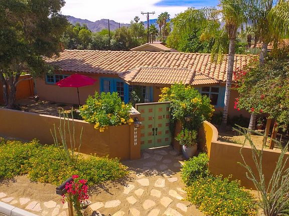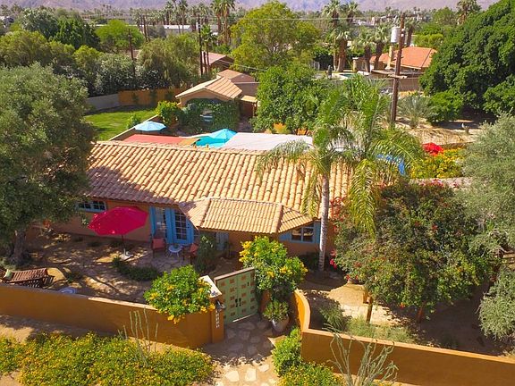 Palm Desert, Resort Style Property two Blocks from our famous El Paseo ! SEE Video Tour. Rare Opportunity...first time available in 20 years. A Unique, Ultra Private, timeless environment. Spacious 4 Bedrooms w/ views from every room, 3 Baths, custom detached Casita, Walled & Gated ... awesome mountain views in every direction. The deserts most coveted South West mountain views are Poolside giving year round Ideal exposure. Approx 1817 SF this home is an original Palmas Village winter cottage, it has been developed with LOVE...Striking MATURE landscape, stunning 50 + year old Bougainvillea, Olive and Citrus Trees. All Additions & Casita are fully permitted including the app.300 ft + custom stucco, stained wall. Meticulously maintained, like new, recent Farmhouse/Desert Cottage remodel. NO HOA, located where De Anza Way is broad w/ sweeping Views & 600- 775K homes are your neighbors. This is for the non conformist...who appreciates the Beauty of Privacy.