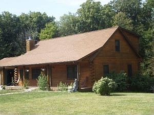 Enjoy quiet evenings relaxing on your deck and watch your wild friends frolic in your back yard. Or spend an evening curled up in front of this beautiful stone fire place. This spacious oak log home will thrill any nature enthusiast. Step across the full length shed porch and into the vaulted hearth room. Look up at the spacious loft that could be your office/study. Great kitchen w/SS appliances.