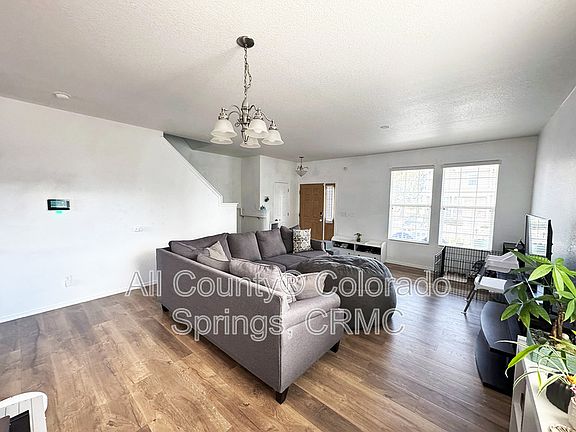 Two story end unit townhome, with 3 bedrooms and 2.5 baths. Large open concept as you walk into the living area that flows through to the kitchen, and dining area. Main level laundry room, and half bathroom. Upstairs features a spacious Primary retreat with a connected bathroom, two additional bedrooms, and a shared bathroom. Kitchen includes a stove, refrigerator, dishwasher, and microwave. Washer and dryer included. Central A/C. There are two assigned parking spaces directly in front of the townhome. Security system available at tenant expense. Very close to various schools, Fort Carson, dining, and shopping. Dog friendly with additional deposit. Owner may consider up to 2 dogs, maximum 100 lbs, upon approval, with additional pet deposit, pet admin fee, and Petscreening profile. Offered by All County Colorado Springs, CRMC. Call us today, or see more of our properties by visiting us online. Please note, if approved for this property, the longest we can hold off before starting a lease is two weeks from the approval date, unless home is not move in ready at time of application approval. *Renter's Insurance is required upon execution of lease. All County Colorado Springs provides coverage options with a 3rd party vendor. Inquire within for more details. Applicant has the right to provide All County Colorado Springs CRMC with a Portable Tenant Screening Report (PTSR) that is not more than 30 days old, as defined in 38-12-902(2.5), Colorado Revised Statutes; and 2) if Applicant provides All County Colorado Springs, CRMC with a PTSR, All County Colorado Springs CRMC is prohibited from: a) charging Applicant a rental application fee; or b) charging Applicant a fee for All County Colorado Springs, CRMC to access or use the PTSR.