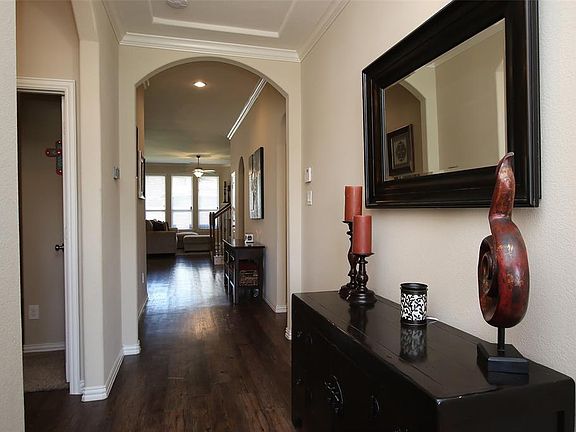 Home sweet home. A story and a half, all bedrooms down, bonus room with powder upstairs. Wood floors, carpet in bedrooms. Remote control gas fireplace, nice covered back porch in a gated community.