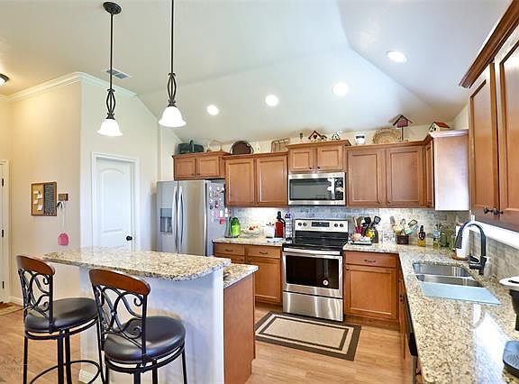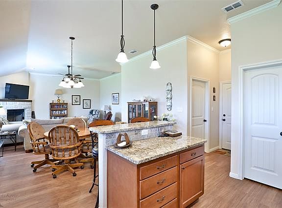 Welcome Home. Better than new home conveniently located in Carriage Hills subdivision. Walk in and fall in love with the open living and kitchen area perfect for entertaining. Large walk in pantry. Under cabinet lights, light up the ample kitchen counter tops. Oversized master bedroom with en suite bathroom. Easy to keep luxury vinyl flooring through out the living areas and carpet in the bedrooms. You will enjoy the backyard with green grass and stained wood privacy fence. Sprinkler system in the front and back. Watch the beautiful West Texas sunsets over Kirby lake while sitting on your covered back porch or through the window over the kitchen sink. Make your appointment to see today.