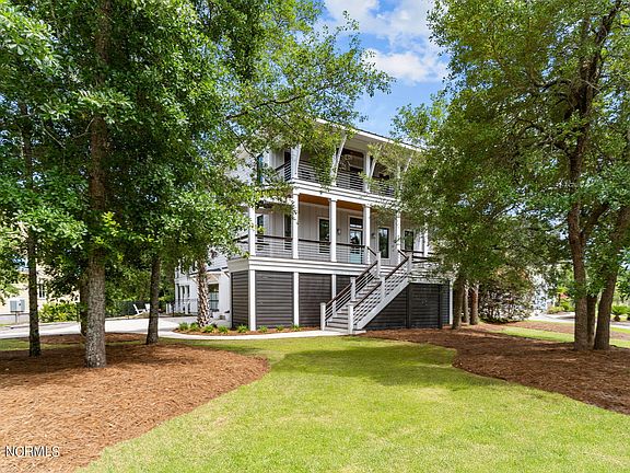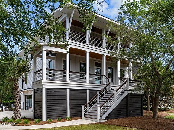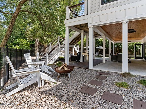 Discover unparalleled luxury tucked away on a cul-de-sac in the desirable Hellenic Shores neighborhood. 7426 Poseidon Point is a coastal-inspired home offering various views of Pages Creek from multiple porches, with an idyllic outdoor sanctuary and a transitional floor plan perfect for entertaining. The aquatic oasis is hidden among mature trees and landscaping and offers an area for relaxation while being undisturbed by nearby neighbors. The three-car garage can house full-sized vehicles and includes an additional entertainment space with a half bathroom and custom bar with direct access to the outdoor living space with a pool and outdoor shower. This Hellenic Shores home has over 4,200 square feet of elevated living space, a primary suite with a walk-in closet and tiled bathroom, 3 guest bedrooms, each with an en-suite bathroom, an additional half bathroom on the main floor, as well as a home office. Timeless designs are found throughout the home and highlighted in the gourmet kitchen with subway tile, gas cooktop, and pendant lighting above the eat-in island. Beam detailing provides a visual separation between the kitchen and living room without interrupting the continuity of the open design. Floor-to-ceiling windows pull in natural light to bridge the indoor and outdoor elements. An elevator provides effortless access between each level of the home. The copula room on the third floor presents a cozy, flexible space flooded with natural light and is perfect for an additional office or exercise studio with wraparound views. Walk to Pages Creek Park Preserve with kayak launch and trails. Enjoy all Wilmington has to offer, with
