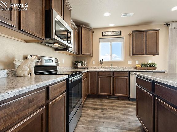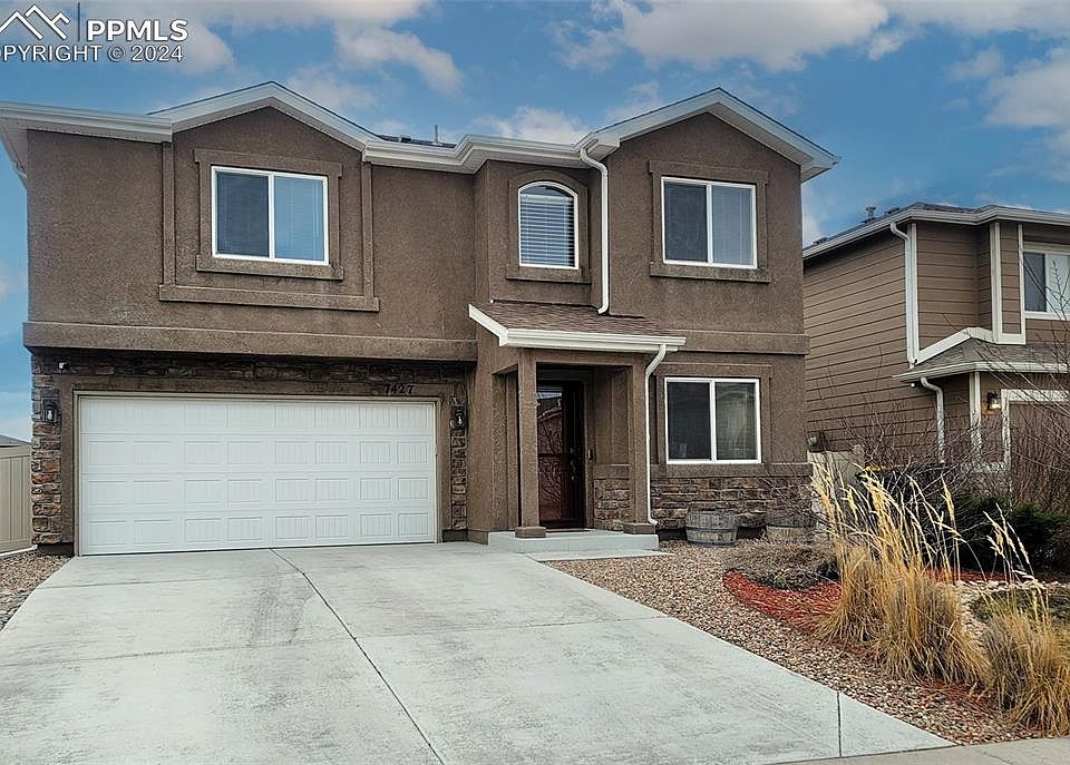 Gorgeous full stucco 2 story Challenger home in Ventana, Immaculate 3 bedroom, 3 bath with AC and a large loft. 5pc master bath with large walk in closet, all bedrooms have walkin closets!freestanding shower and spa tub. Open floorplan with extended engineered flooring, Kitchen boasts Stainless Appliances, an island and large pantry, Quiet office with french doors, You'll love the mountain views from the large, fenced backyard that backs to open space. Large loft on the upper gives you that second family space. Family room enjoys a built-in fireplace for those cozy nights, Generous laundry is up. Fully finished garage. From the oversized paver patio you'll enjoy the front range views and the privacy! No neighbors behind! Community features a fitness space and a pool! Easy access to Ft Carson, Peterson or Schreiver. Don't miss this beautiful home!!!