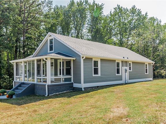 Back on the market, with no fault to the seller. This beautiful renovated Vinyl Rancher featuring 3 bedrooms and 2 full baths situated on 4.38 acres in Chesterfield County. Refinished hardwood floors throughout with new paint, new kitchen cabinets, and stainless dishwasher, refrigerator, stove and microwave all convey. Modern kitchen floors and new countertops. Both bathrooms have been completely renovated. One level living at it's finest with a rural country setting. One car attached garage or great for a workshop area. Must see to appreciate it! Enclosed front porch area and rear concrete patio of the Master Bedroom.