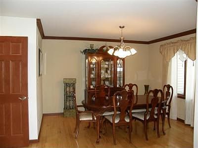 Extremely well kept 1 owner home on lush landscaped lot. Just move in. Spacious great room overlooks the lg yd.Formal DR features wood floor off the charming entry. 1/2 bath w pedestal. Kitchen has maple cabinets, granite counters and built in stainless appliances. Island is good size and is concrete. Very stylish kitchen 2 pantries and sep broom closet. The dinette has rm for a good size table and overlooks the back yard w newly stained deck. Canned lighting and speakers in the kitchen. Mud rm off the 3.5 heated garage w closet. Upper level can be accessed by a back staircase or the main staircase entry. Upper level has a lg laundry with sink and counter space. Master suite is very spacious, walk-in closet, bath has a jetted tub w sep shower. Dual vanity. 2 addtnl bedrooms and a hall bath. The ll has 3 finished area 1 has a bank of cabinets and beverage cooler. Plenty of room for a table. Game rm and office 3/4 bath. Daylite windows. Irrigation. All appliances. Playset.