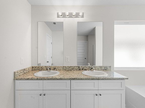 In the kitchen and bathrooms, you will see the beautiful granite countertops and white cabinetry that has brushed nickel hardware. The primary bathroom has a large closet with ventilated shelving and a dual sink vanity. The kitchen has stainless-steel appliances including a stove, microwave, and dishwasher with center island is open to the large living room and dining area. Three additional rooms are located off the front entry hall as well as a laundry room.