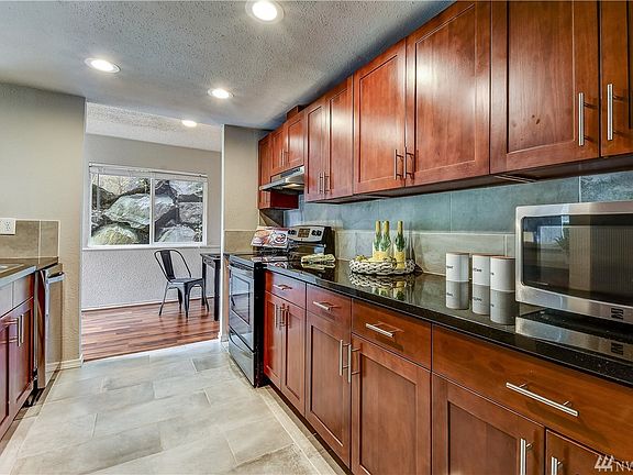 Fully remodeled end unit. 2 bed 2 bath plus den/office space. Light filled living spaces, all open plan. Kitchen open to great room, dining and extra den/office. Very nicely remodeled bathrooms and kitchen. Granite, stainless. 2 spacious bedrooms. Master with bath attached and Walk in closet. Great centrally located community, minutes to downtown Redmond, transit and major employers. Well run association, no rental cap, no special assessment. 1 carport with storage. Lots of guest parking.