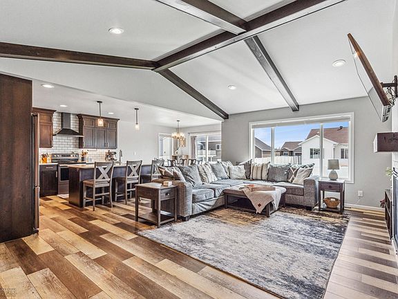 Come take a look at this spacious and well maintained rambler in Eagle Pointe! Once inside you'll be welcomed by vaulted beamed ceilings and a gas fireplace. The kitchen includes quartz countertops, an exhaust hood, backsplash and SS appliances. The main level has 3 bedrooms, 2 bathrooms, laundry, mudroom, and a finished 3 stall garage with heat, a floor drain and water hookups. Head downstairs and be welcomed by another huge living area. Don't forget about the rough in for a future wet bar. The basement includes 2 more bedrooms, a full bathroom and a bonus space. Outside you'll be able to enjoy summer evenings with the concrete patio and fully fenced back yard. Come check it out!
