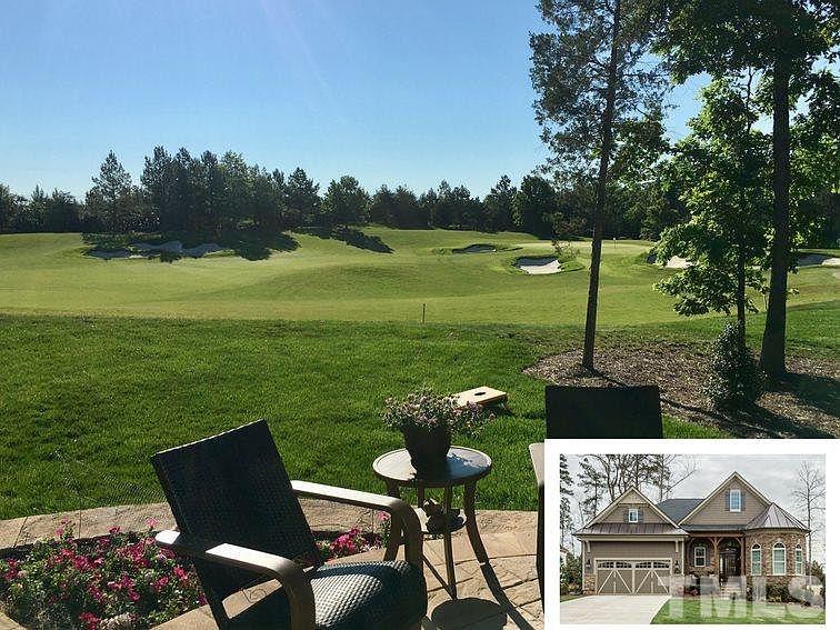 Under Contract - Waiting on DD check -Stunning Hasentree golf course views! Villa w/ outdoor entertaining - screen porch, patio, firepit on .47 acre! Gourmet kit. w/sunny breakfast area and picturesque view of green. Loaded w/ special features/upgrades- floor to ceiling stone fireplace, huge walk in master closet w/ built-ins, landscape lighting, walk up attic & expanded garage. Complete lawn maintenance included in HOA. Amenities 2nd to none including pool, tennis, golf, fitness, lake and walking trails.
