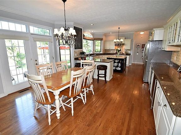 Beautiful updated colonial situation on quiet cul-de-sac lot of 1.65 acres. Overlooks tranquil water view from brick paver stone patio. Fabulous open floor plan showcasing favorite builder design with spacious open kitchen and casual dining space, outstanding updated custom kitchen with center island, gorgeous granite countertops, 3 beverage centers and more. 9 ft ceilings, white wood trim and moldings, extensive hardwood floors. Formal living and dining rooms, nice office/den, family room with fireplace, first floor laundry. Upstairs delivers 4 bedrooms, including owner's suite with walk-in closet and super sharp master bath, 3 additional bedrooms, one with en-suite bath and nice hall bath. Lower level is completely finished with 5th bedroom and attached full bath, multiple rec areas for entertaining/sport/craft. 3 car side entry garage. Desirable North Hudson location, all city amenities. Pride in ownership. Move in and enjoy!