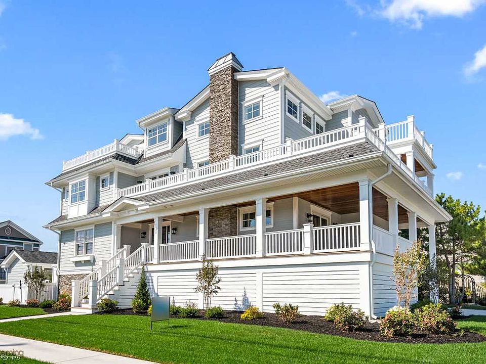 Brand new stunning Tom Welsh Custom built corner location featuring unbelievable bay and sunset views across from Armacoast Park with tot lot playground and sanctuary, a unique location with direct beach access with a designated raft beach at 73rd Street. This newly constructed home will be designer furnished allowing you to move right in and enjoy. Interior features include 6 bedrooms all ensuite , plus (2) powder rooms to service 1st and 2nd floor entertainment areas sheltered deck on lower level and sundecks on 2nd and 3rd levels, 4 stop elevator, wet bar, heated pool with sun shelf 14' x 24" plus 8' x 15' Cabana. Lower level affords family room with wet bar with direct access to the heated pool, 2 bedrooms ensuite, laundry room( Whirlpool front loading washer and dryer (2 sets), powder room and garage. Second level affords spacious kitchen with center island and custom cabinetry, Kitchen - Wolf 48" stainless steel 6x burner gas range; SubZero 42" stainless steel french door refrigerator; Bosch dishwasher, dining area, 2 bedrooms ensuite, soaring cathedral ceiling in living area with gas fireplace and large wrap around deck with beautiful bay views. Third level offers spacious master bedroom with private deck, junior master with private deck, plus 2nd laundry area and office. Don't forget elevator access from ground level to each floor! Floor plans and all specifications in associated documents!