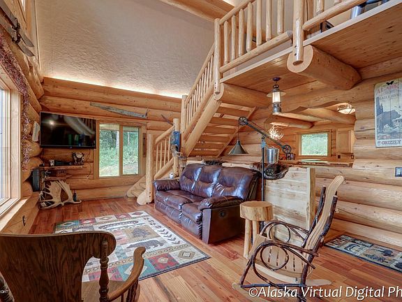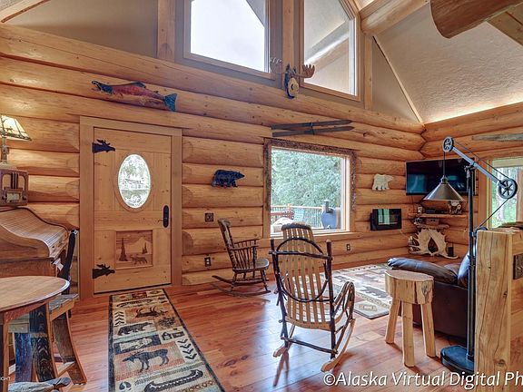 Impressive is your Alaska Log Dream Home! Hand hewn/hand scribed massive logs, 1200 SF detached garage/workshop w/in-floor heat! House SF fm appraisal. Muni is 2035. Huge deck, hardwood flooring, kitchen updated 2010 w/granite, stainless, reclaimed lumber flooring! Bonus ''dry cabin'' endless possibilities! 5 min hike to Barbara Falls, embrace nature in this fabulous custom home w/unobstructed vie