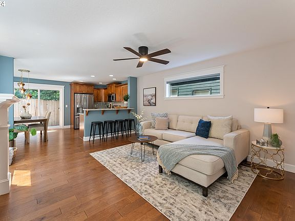 Charming newer construction in popular Woodstock. Open layout features engineered hardwood floors, gas fireplace and lots of windows. Spacious kitchen with stainless appliances, gas stove, built-in microwave, granite counters and lots of storage. Dining room has slider to fenced back yard with patio and raised beds. Primary suite has vaulted ceilings, double sinks, walk-in shower and large closet. Washer/dryer included. Sellers preferred Lender is offering buyers a 1% buy down on rate for the first year. [Home Energy Score = 9. HES Report at https://rpt.greenbuildingregistry.com/hes/OR10191603]