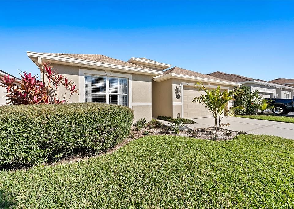 Welcome to this stunning 3-bedroom, 2-b house located at 7429 Dragon Fly Loop. This property is currently available for sale and offers a range of desirable features that are sure to impress. Upon entering, you'll be greeted by an open and spacious floor plan, complemented by wood plank tile floors that exude warmth and elegance. The kitchen boasts stainless steel appliances and quartz countertops, providing a modern and stylish space for cooking and entertaining. With a 2023 roof, water heater, and HVAC system installed in 2016, you can enjoy peace of mind knowing that these essential components have been recently updated. Additionally, the property features smart home technology, allowing you to conveniently control various aspects of your home with ease. Outside, you'll find a brand new screened-in lanai where you can relax and unwind while enjoying the beautiful Florida weather. The large walk-in closets provide ample storage space, ensuring that you can keep your belongings organized. The front and back yard have been enhanced with new sod, creating a lush and inviting outdoor space. A 2023 vinyl fence adds privacy and security to the property. This house is part of a community with low HOA fees and no CDD fees, making it an attractive option for those seeking affordability without sacrificing quality or amenities. Minutes from Alafia river boat launch, Manatee viewing center, Gardenville Park and recreation center and Goodrich Riverview 14 GDX theater. Conveniently located near I-75 with a short distance to Tampa and the tri county areas, beaches and theme parks. Schedule your showing today. Wont last long.