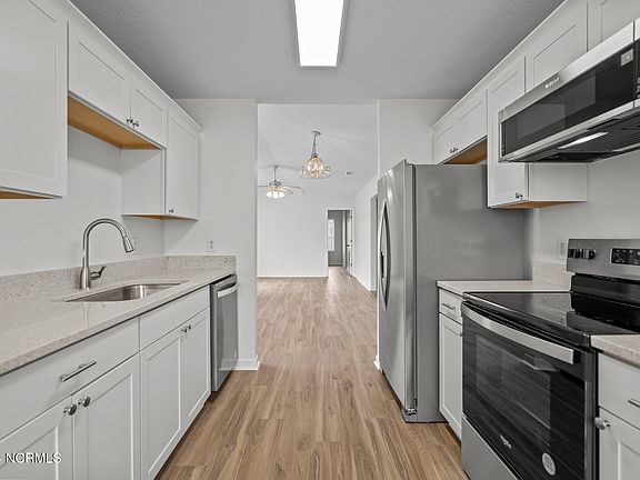 This adorable home in Ogden has a brand new remodeled kitchen with granite countertops, new cabinetry and stainless appliances. New Luxury Vinyl Plank flooring has been installed throughout and home was repainted in 2024! This home features vaulted ceilings, attached 1-car garage for your vehicle and a nice patio area with partial privacy fence. The hot water heater was replaced in 2020. HOA takes care of front yard maintenance. Conveniently located near I-40, Ogden Park, Seven Mile Post, The Bend, and Broomtail Brewing. Just a short drive to Mayfaire Town Center, Wrightsville Beach, restaurants and shopping. Move in before the holidays!