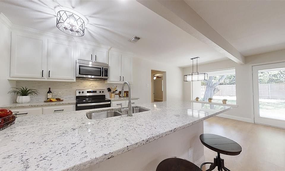 Remarkable in Ridglea Hills Addition. A traditional home meticulously renovated with a twist of modern flair. Situated on a shaded interior lot, this home speaks comfort inside & out. New owner will enjoy functional use of space with an open concept; kitchen, dining & living that will ensure to keep all engaged when entertaining family & friends. Kitchen comes equipped with recently installed cabinets, granite counter tops, & stainless steel appliances. Beautiful baths with decorative lighting, fixtures, granite counters & custom tile work in master. Other features include recently installed laminate, carpet, & tile flooring, recessed lighting, 6in base boards, & ceiling fans. Utility rm has room for freezer.