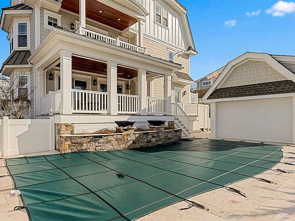 Have you been looking for the perfect beach home that checks off all of your needs? The wait is over. This 5,150 sq ft estate sits on an oversized corner lot boasting incredible bay and sunset views. Even better, it was completely renovated in 2019 along with the addition of an inground pool and spectacular cabana. This 6 bedroom, 5 full bath, 2 powder room, 3-story home is situated in the quiet Sunset Drive neighborhood across from the bay and only two short blocks to Avalon's southend beaches. The outdoor living area is truly one of a kind. The custom gunite pool has a sunshelf, three fire bowls, and water fountain features. Add in one of the largest cabanas in Avalon with automatic hurricane shutters and you have a winning combination for your own private oasis. As you enter through the grand foyer you are greeted with a beautiful brazilian cherry staircase. The first level consists of 4 bedrooms (2 ensuite), a full bath, a half bath, laundry room and a spacious living room. The living room is perfect for entertaining as it has a wet bar and sliding doors that open up to a wonderful deck that overlooks the pool and cabana. The second floor is the ultimate entertaining space. Boasting an open floor plan layout, the brand new kitchen shines with an island large enough to sit 6. Everything is top of the line including the appliance package which consists of a Subzero refrigerator, a wolf range and double wolf ovens. In the corner you have a dining area large enough for 10 people and the living area has cathedral ceilings which really adds to the grandeur. There are two sets of sliding doors that open up to two different decks, both of which have bay views. The deck to the north was outfitted with automatic sliding screens. An ensuite junior master bedroom with a private deck rounds out this floor. After a day of entertaining guests and family, retire to the third story which is dedicated to the master suite. At the beginning of the hallway you will access an incredible space that is used as a home office and sitting area. Down the hall there is a second laundry area as well as the bathroom that offers a dual vanity. The spacious walk-in closet allows you to fully organize your wardrobe without fear of overcrowding clothes or shoes. Finally you come to the bedroom, which has plenty of space for a king size bed, and a private balcony to ensure you can wind down from the day by quietly enjoying views of the sunset. This wonderful family compound truly has every feature one could ask for while remaining comfortable and practical. There is a brand new three zone HVAC system, video security system, central vacuum, three stop elevator and a second rear staircase. Renovations in 2019 consisted of all new hardie board siding, IPE decking, new three zone HVAC system, automatic screens/hurricane shutters and every bathroom was redone with custom tile work. You truly must see this home in person to appreciate the quality and elegance. Call today to schedule your appointment before it is too late. Home comes tastefully furnished minus a few personal items.