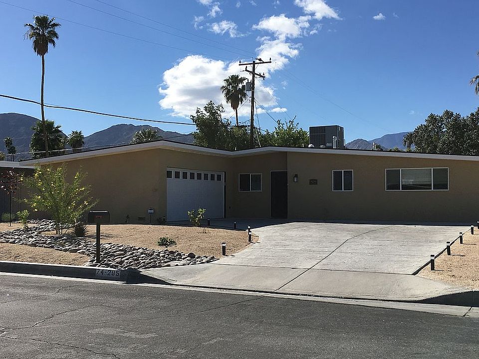 Stylish, quality, and close to everything. Can Show on Very Short Notice. This South Palm Desert Mid-Century opportunity is within walking distance to El Paseo and has many upgrades: New Flooring. New Roof. New AC. New windows. New Driveway. New Front Landscaping. New Block Wall. New Iron Gates and Sidewalk. Bathrooms have New Vanities, Toilets and Tile. Redone Fireplace. New Pantry in Kitchen. Popcorn ceilings cleaned and resurfaced. Great blank slate back yard big enough for a pool. Must see. Will not last long at this price.