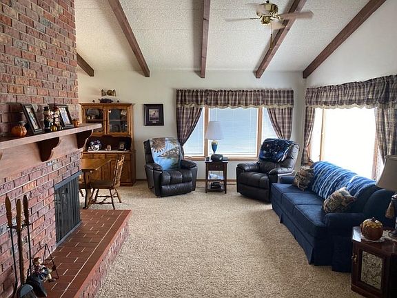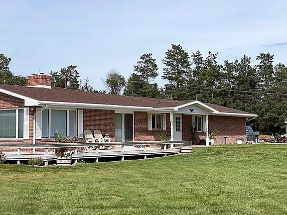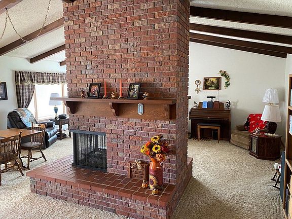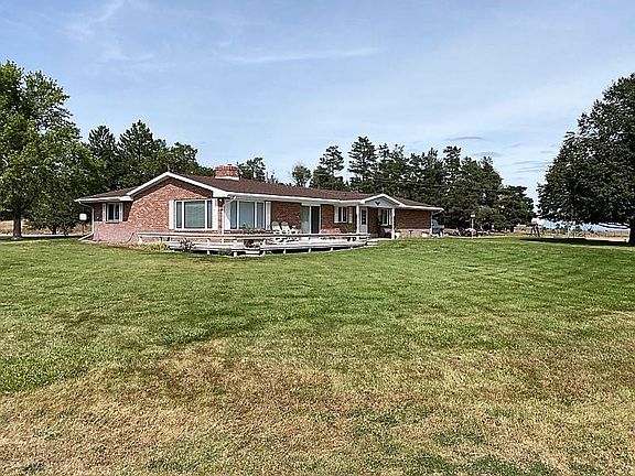 Brick ranch on 9+ acres north of Hayes Center on paved Hwy 25. Excellent views and mature windbreak of trees on the north side of the rock driveway. All electric, all brick, all with excellent upkeep. 3 bedrooms, 2 baths, mud room, office, and 2 car garage. Large storage shed and nice landscape. 3 sided fireplace in great room with cathedral ceiling. Don't delay - properties like these don't come along very often.