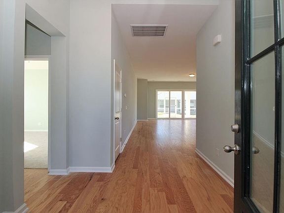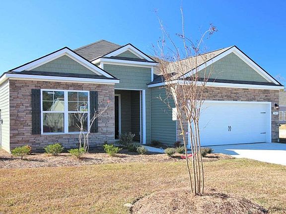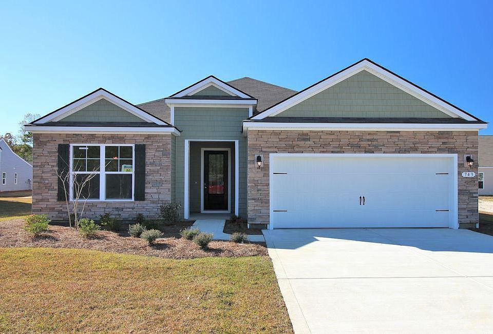 One Level Eaton floor plan with open and airy interior. Owner's Suite has Tray Ceiling, Walk-In-Closet and 5 foot shower. This is a beautiful home located in the desirable Carolina Crossing community. There are elevated ceilings in the great room and all very open concept. There are hardwood floors throughout the main area and ceramic tile floors in the bathrooms and laundry room, stainless steel appliances, granite countertops and tile backsplash in the kitchen. This house is a must see! All dimensions are estimates and not guaranteed. Low HOA fee incl: Lawn Maint. & Irrigation, Trash pick-up, Basic Cable, Community Pool & Clubhouse.