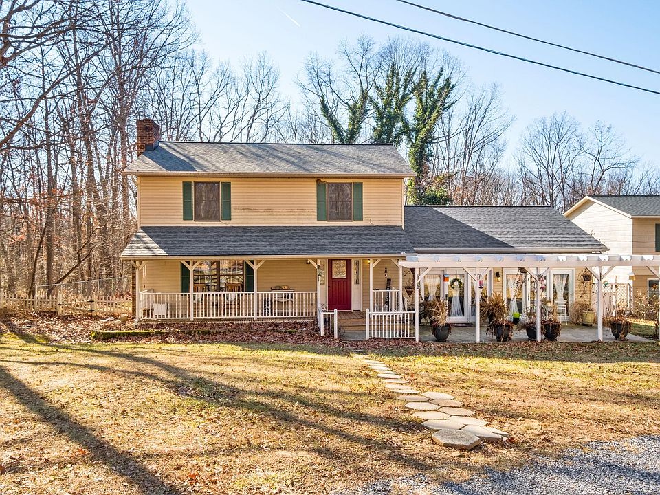 Charming two story home just east of Shenandoah VA. Private setting further improved by a 3 bedroom guest house and detached 2 car garage! Property has 2 acres and is surrounded by trees with a quiet and serene setting. Primary home has huge family room which is ideal for a large family gathering, it also features hardwood floors and a large stone fireplace in the living room. The guest cottage is ideal for additional family member or Airbnb. New Roof, New Gutters, New Heatpump! Call for more details!