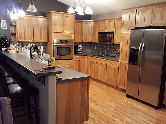 Absolutely gorgeous zero lot line ranch is ideally located on a quiet cul-de-sac. Over .4 acre lawn with timber and a one of a kind view. Step inside and be delighted by the vaulted ceiling with skylights in oversized great room. Adjoining dining area with hardwood flooring is perfect for formal or casual dining. Dream kitchen boasts hickory cabinets, stainless steel appliances including gas cook top and raised oven, breakfast bar, and planning center. Fabulous vaulted 4 seasons room looks over the woodland view with access to the attractive deck. Master bedroom has huge walk-in closet. 2nd bedroom with vaulted ceiling and arched window detail, guest bathroom, main floor laundry with folding center and window, and plentiful closet space completes this level. Downstairs, in the finished walk-out lower level, you'll find expansive family room/rec room/theater room, 3rd bedroom with tiled full bathroom, and huge storage room.