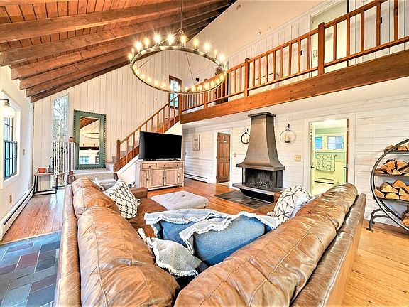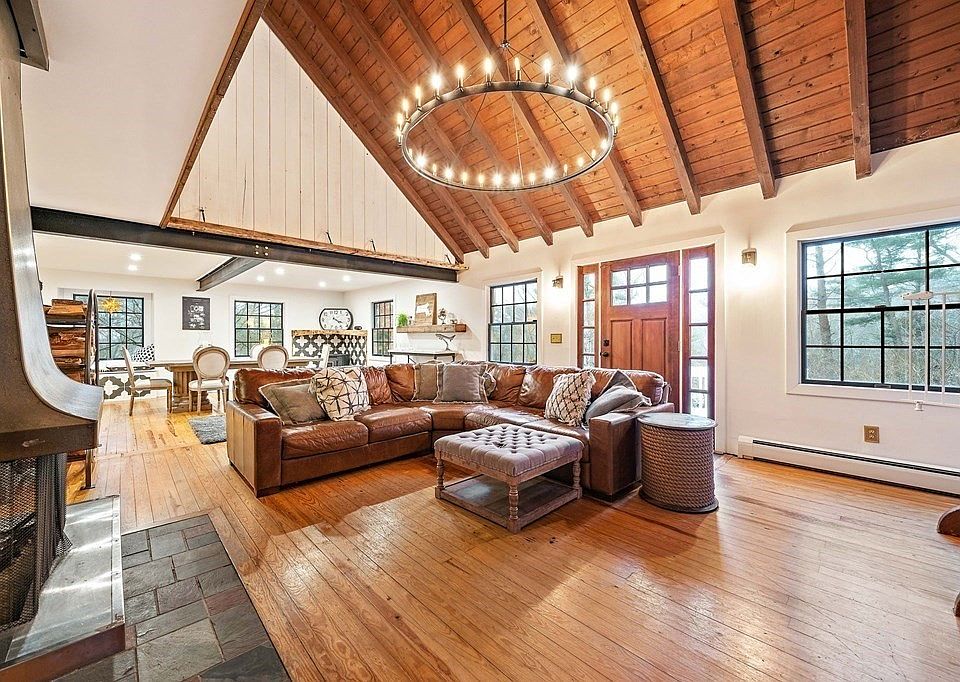 Not your average cape!!!This unique home is set high a top the hill offering an extremely private and tranquil setting. Step inside this home and you'll feel the restoration hardware vibe. There's a fabulous open floor plan with high cathedral ceilings, shiplap walls, steel beams, free standing fireplace and a show stopping chandelier that ties it all together. The kitchen has been updated with pretty cream cabinets, granite counters and stainless appliances. There is plenty of storage in the kitchen with a wall of closets for pantry and plenty more storage. The master bedroom is large with wooden cathedral ceilings, shiplap and a Juliet balcony overlooking the manicured grounds. There are 2 addl nice size bedrooms and 2 updated and spacious full baths. The back yard is an entertainers dream with enormous back deck, two addl stone patios and a recently planted apple and peach orchard. This property is just one mile to the beach w/ great restaurants and marinas and close to train.