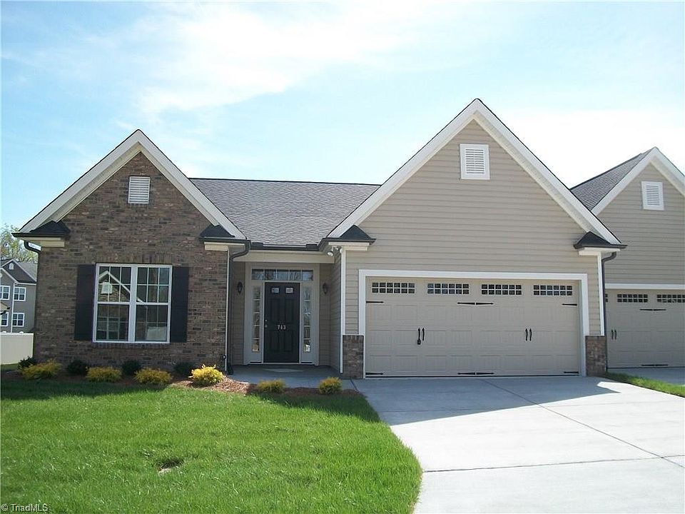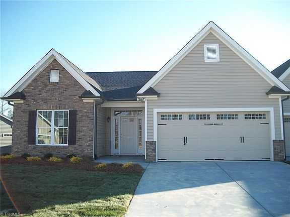 Thornburg plan w/ sunroom being built by Shugart w 9'ceilings, sidelights beside front door & transom above front door, brick ledge, L-shaped bar in kitchen, double bowl full vanity in master bath, corner fireplace, comfort height toilet in master bath, roman style interior doors, 36" wall kitchen cabinets in flat panel birch, granite countertops & ceramic tile backsplash in kitchen, wood floors in hallway, black kitchen appliances. Taxes & tax value not yet updated. Dimensions taken from floor plan.