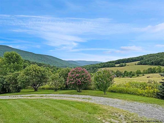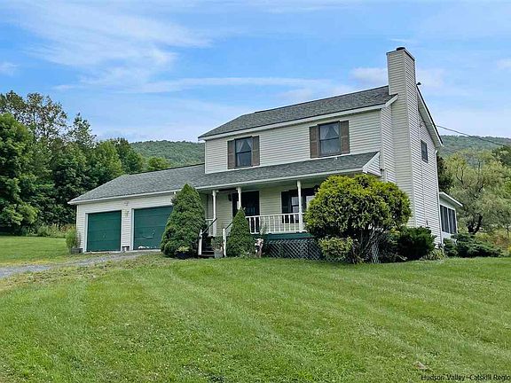 The first time on the market is this well-maintained colonial overlooking the most spectacular mountain views in the Catskills - in fact, there are big views from almost every window. Set back from the road and perfectly sited up a small hill, you'll appreciate the picture-perfect meadow below with a small stream in front as you relax on the front porch watching the seasons pass by. The attached two car garage which will come in handy in the winter months, provides easy access to the main living level. Once inside, you'll feel right at home in the spacious living room anchored by the large window and wood-burning fireplace with built-in blower. The bright and airy kitchen & dining area flow seamlessly and create the perfect environment in which to entertain friends and loved ones. The bonus three-season room is accessed through the dining area and creates additional ground-floor space to unwind. Behind the kitchen there's plenty of storage and a convenient half bath. Upstairs you'll find the three bedrooms, the primary bedroom is in the rear corner with ensuite bathroom and shower. The two additional bedrooms face the mountain views and share the full bathroom with bathtub. The full, dry basement houses the washer and dryer with plenty of room for storage. Move right in or update to your preferred taste. Located 2:30 from the GWB and just minutes to shops and restaurants in Roxbury and Margaretville, hiking, and skiing at Plattekill and Belleayre. Enjoy all this region has to offer year-round!