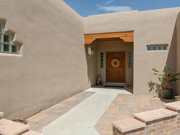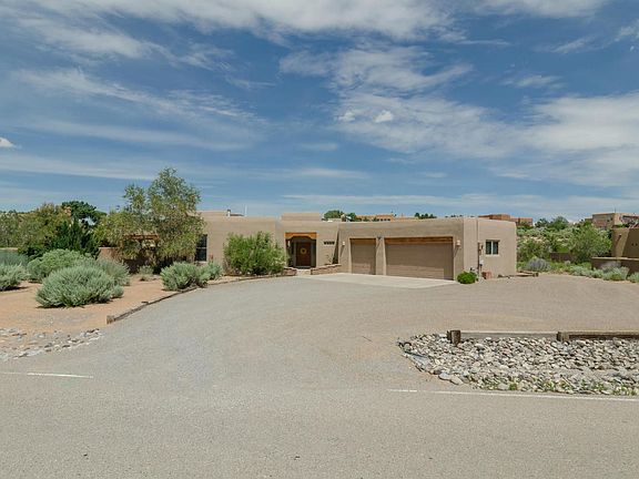 Enchanting New Mexico Style & Charm describes this beautiful single level custom, on a .75 acre lot, capturing gorgeous views of the Sandia Mountains! Experience fine amenities & attention to detail in this bright & spacious home w/an abundant of natural light! Features include: Raised Tongue/Groove Ceilings, venetian plaster walls, Pella Wood Windows, solid wood interior doors, porcelain tile floors & engineered wood floor in the master. Deluxe kitchen with maple cabinetry, granite & stainless steel appliances. Great room is enhanced with a kiva fireplace & atrium doors to the expansive back portal. Separated master suite with fireplace & atrium doors to patio; luxury bath room has garden tub, double head tiled shower. NEW stucco, roof & coolers in 2014! Back yard access for parking RV!