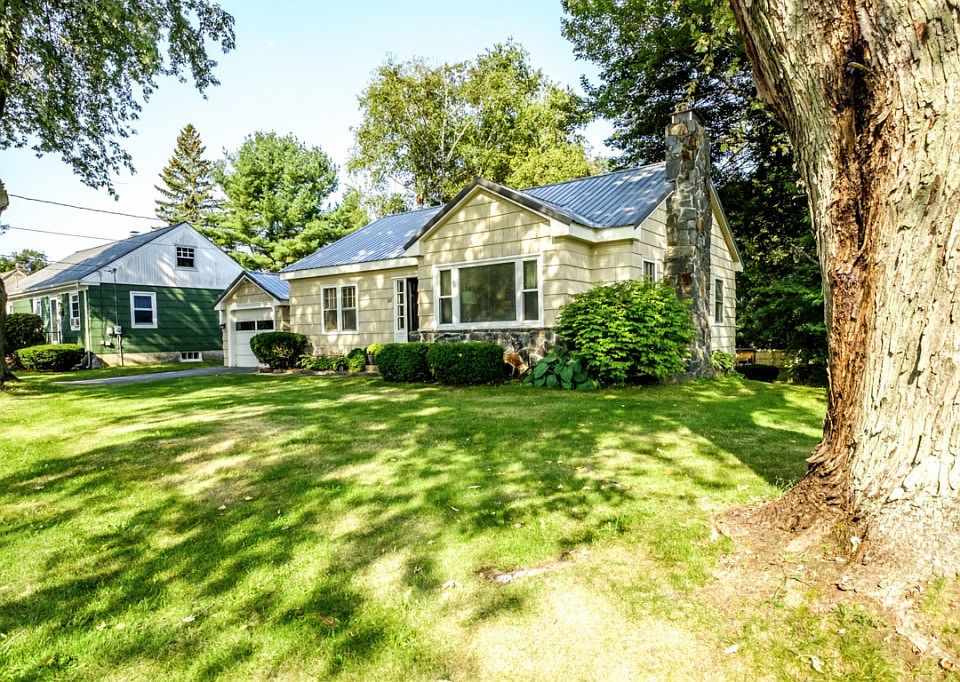 Offered to the market by Donna Saxby of the Tru Brit Realty Group of Saxby, Meek and Coward, Keller Williams Realty. Call to book a private showing on 207-553-1384. One level living in popular area near the Community Center & pool! This charming home boasts: a spacious living room with fireplace & amazing stone surround, 2 bedrooms on the 1st floor with optional 3rd bedroom in lower level, 2 updated baths, newer metal roof, updated eat-in kitchen with stone backsplash & a sun-dappled sitting room overlooking an expansive, private & fenced back yard! The lower level has its own entrance & offers: 3/4 bath, large family room, dining area & bonus room currently used as 3rd bedroom. This home sparkles!