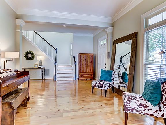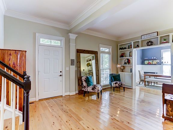So Charming!! This David Weekly plan features 2,372sf, 4 bds & 2.5 baths on a wooded homesite! Custom heart of pine floors flow throughout the main level & hallways up! Gourmet Kitchen w/ Viking gas range w/ downdraft, custom island w/ built-in Viking microwave & upgraded lighting! Gather in the open great room w/ gas fireplace, front living room w/ built-ins or the beautiful shiplapped dining room! Luxurious Master Suite up w/ custom barn doors and access to the balcony. Relax on the swing bed on the upper level porch overlooking the park or enjoy coffee as you start your day. Unwind on the front porch or enjoy dinner or fire pit fun out back. Take a bike ride, walk the trail system, or enjoy the 2 pools, rec areas, playgrounds, pocket parks & refreshing green spaces carefully designed within this community! Baxter Village is home to the Fort Mill Library, restaurants, shopping, fitness options and more...truly a live, work, play concept! Welcome Home! TV/mount stays above fireplace!