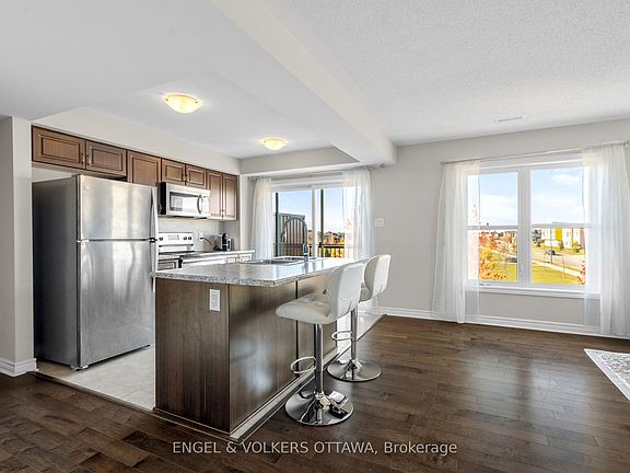 Located in the heart of Avalon, this upper-level stacked condo is a bright and quiet unit, spread across two levels and overlooking Henri-Rocque Park. The main level showcases an airy layout filled with natural light from large windows, complemented by warm hardwood flooring and a soft neutral palette. The spacious living and dining area flow effortlessly into the modern kitchen, which features counter space, stainless steel appliances, and a central island with bar seating. Sliding patio doors open to a private balcony, providing the perfect spot to enjoy evening sunsets or morning coffees. A convenient powder room completes this level. Upstairs, two generously sized bedrooms feature soft carpeting, large windows, and ample closet space. The full bathroom boasts a tiled tub/shower combination, a rich wood vanity, and plenty of counter space for everyday convenience. A laundry closet located just outside the bedrooms ensures you'll never need to carry laundry up or down the stairs again! Located in a vibrant, family-oriented neighbourhood, this property is surrounded by scenic green spaces, walking paths, and parks, creating an inviting environment for professionals and young families. The nearby schools, public transit, shopping centres, cafés, and restaurants make for a convenient and enjoyable place to live for those looking to buy their first property!