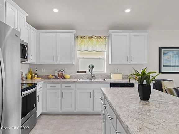 Quick Move-In Ready Home with Builder and Lender Incentives Available. Plus, Save thousands of dollars and have your closing costs paid when using an approved lender. Great Access to Orlando, Minutes from Historic Cocoa Village, short drive to Port Canaveral and Beaches. This 3/2 home features an open floor plan w/10 ft vaulted ceiling. Kitchen features 36'' Pebble Grey Cabinets w/crown molding, Moen faucets, SS Appliances, oversized island, and pantry. LARGE owners suite w/ walk-in closet, Garden Tub & Separate Shower. Third bedroom is perfect for a Home Office with tons of light! Home features include:Taexx pest prevention system, double pane (low E) windows w/ Storm Shutters, and so much more. Energy Efficient w/ 10-year structural, builder and manufacturer warranties. ** Sample Photos